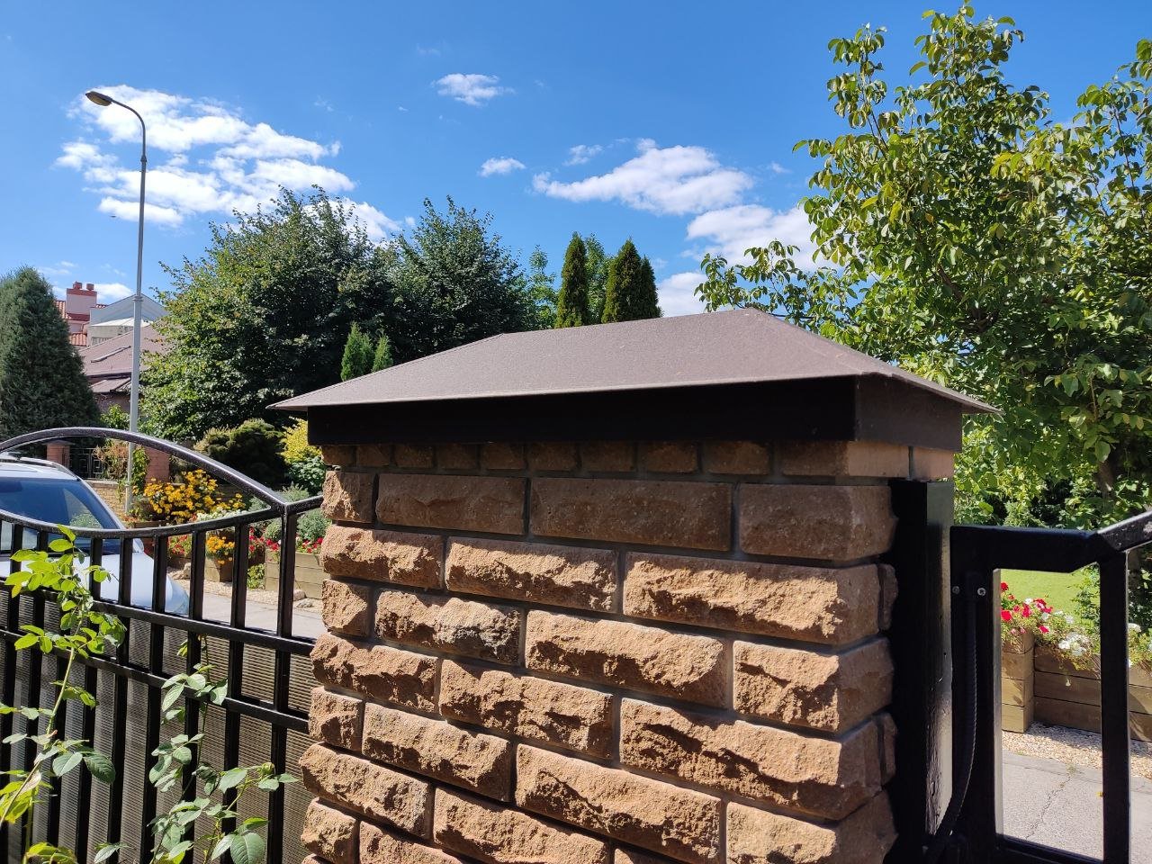 4. Колпаки для столбиков: Для завершения внешнего вида и защиты верхней части столбиков забора используются специальные колпаки. Они монтируются на столбики и создают единый стиль с парапетом, придавая забору более законченный и привлекательный вид.